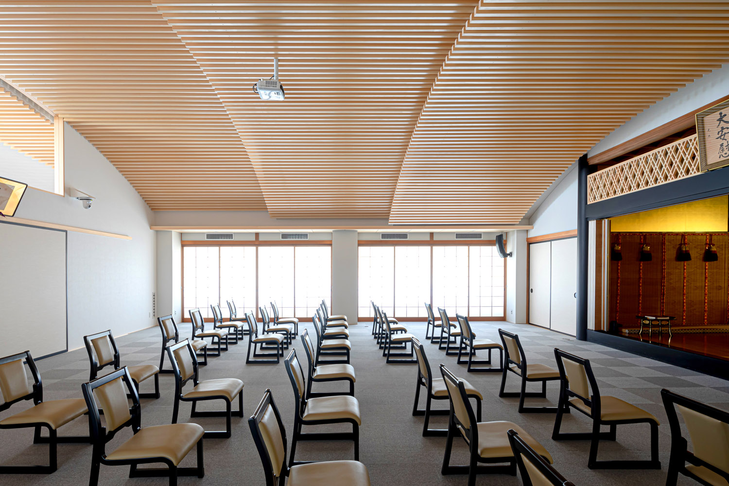 宗教施設 松江山 教覚寺本堂[天井改修] 〈 1 / 6 〉 〈 1 / 6 〉 〈 2 / 6 〉 〈 3 / 6 〉 〈 4 / 6 〉 〈 5 / 6 〉 〈 6 / 6 〉 所在地 静岡市葵区 構造規模 RC造地上2 階 建築面積 -m² 延床面積 改修部:約172m² 竣工年 2022 年 備考: 原設計:企業組合 針谷建築事務所(1975年)