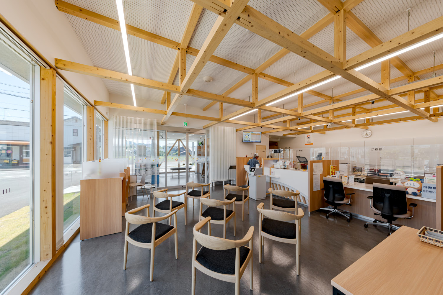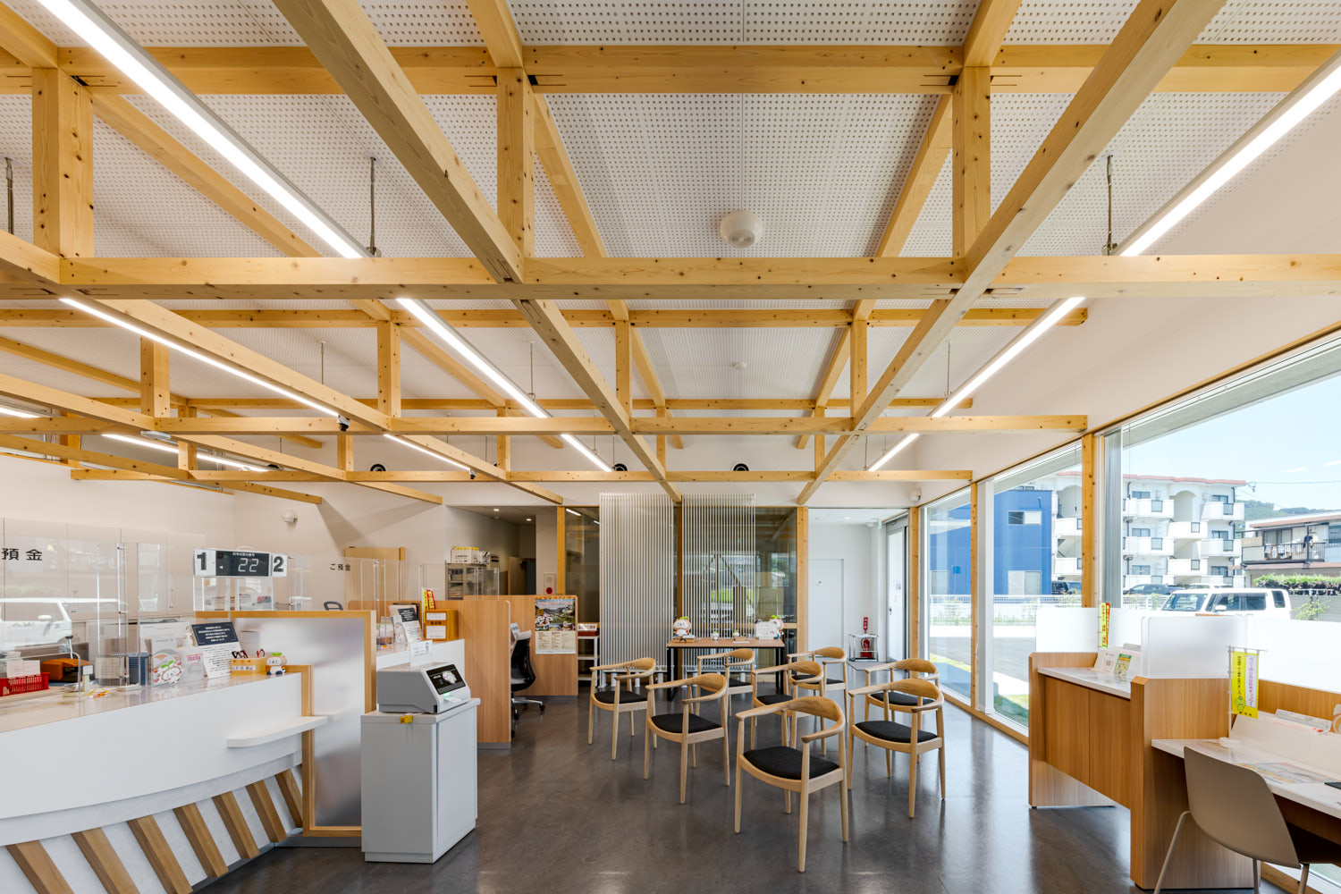 業務施設 しずおか焼津信用金庫美和支店 〈 1 / 7 〉 〈 1 / 7 〉 〈 2 / 7 〉 〈 3 / 7 〉 〈 4 / 7 〉 〈 5 / 7 〉 〈 6 / 7 〉 〈 7 / 7 〉 写真撮影:植村 崇史 所在地 静岡市葵区 構造規模 木造平屋 建築面積 203.60m² 延床面積 188.40m² 竣工年 2025年